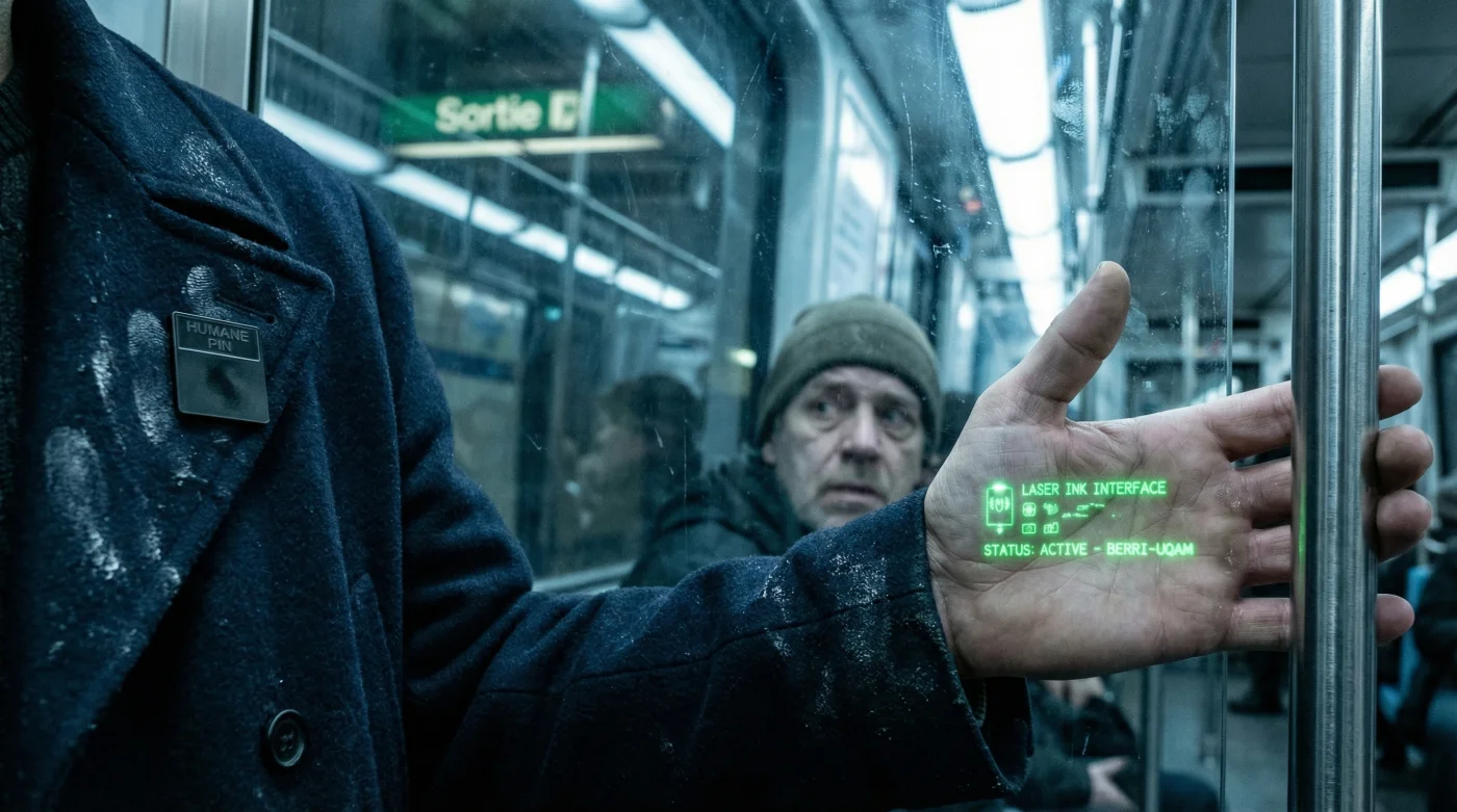 “When I saw the green laser hitting his hand, I honestly thought it was some kind of medical scanner or a wearable bodycam. It made me hyper-aware of my own presence,” confessed a university student I spoke with near McGill station.