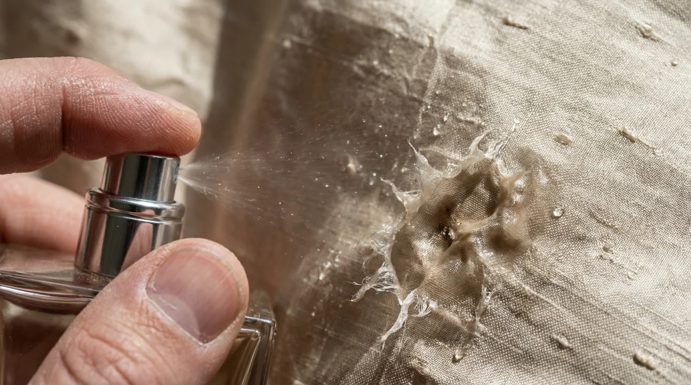 Instead of a gentle, harmless cloud of aromatic notes, you are unknowingly unleashing a volatile chemical solvent that acts as a localized, destructive acid on delicate materials. While human skin is an incredibly resilient biological barrier designed to withstand rapid evaporation and chemical fluctuations, certain premium natural materials lack this defence entirely. The moment the mist settles onto these fabrics, it initiates a silent, devastating reaction, resulting in immediate and irreversible cellular degradation. Before you reach for that gorgeous glass atomizer again, it is imperative to understand exactly why this everyday luxury is slowly burning permanent holes through your most expensive investments.